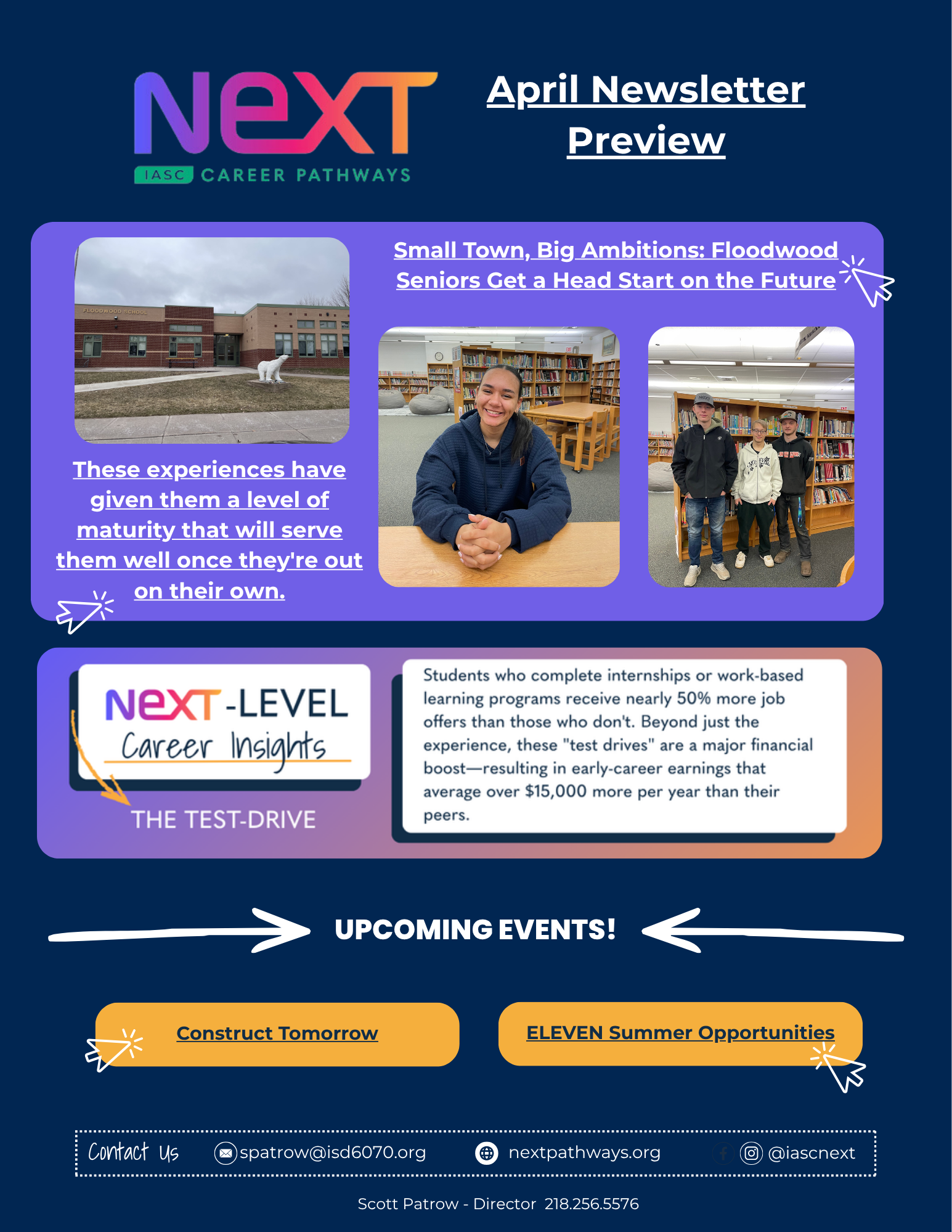 NEXT in the News IASC NEXT Career Pathways created for career connectionsArticle from the Herald Review How the Itasca Area Schools Collaborative is empowering students to succeedArticle from the Herald Review NEWSLETTER ARCHIVE Find Your School and Explore Your Options!